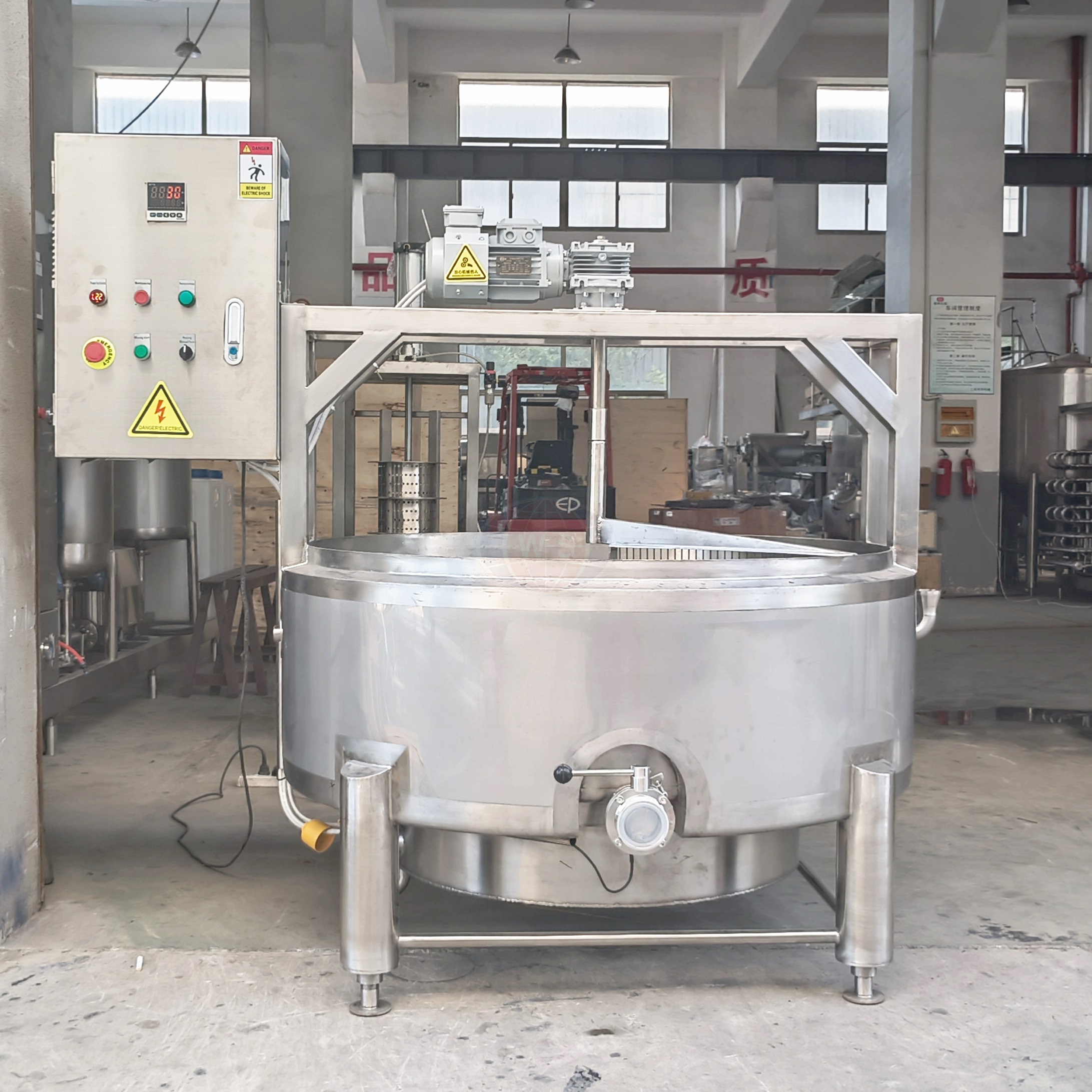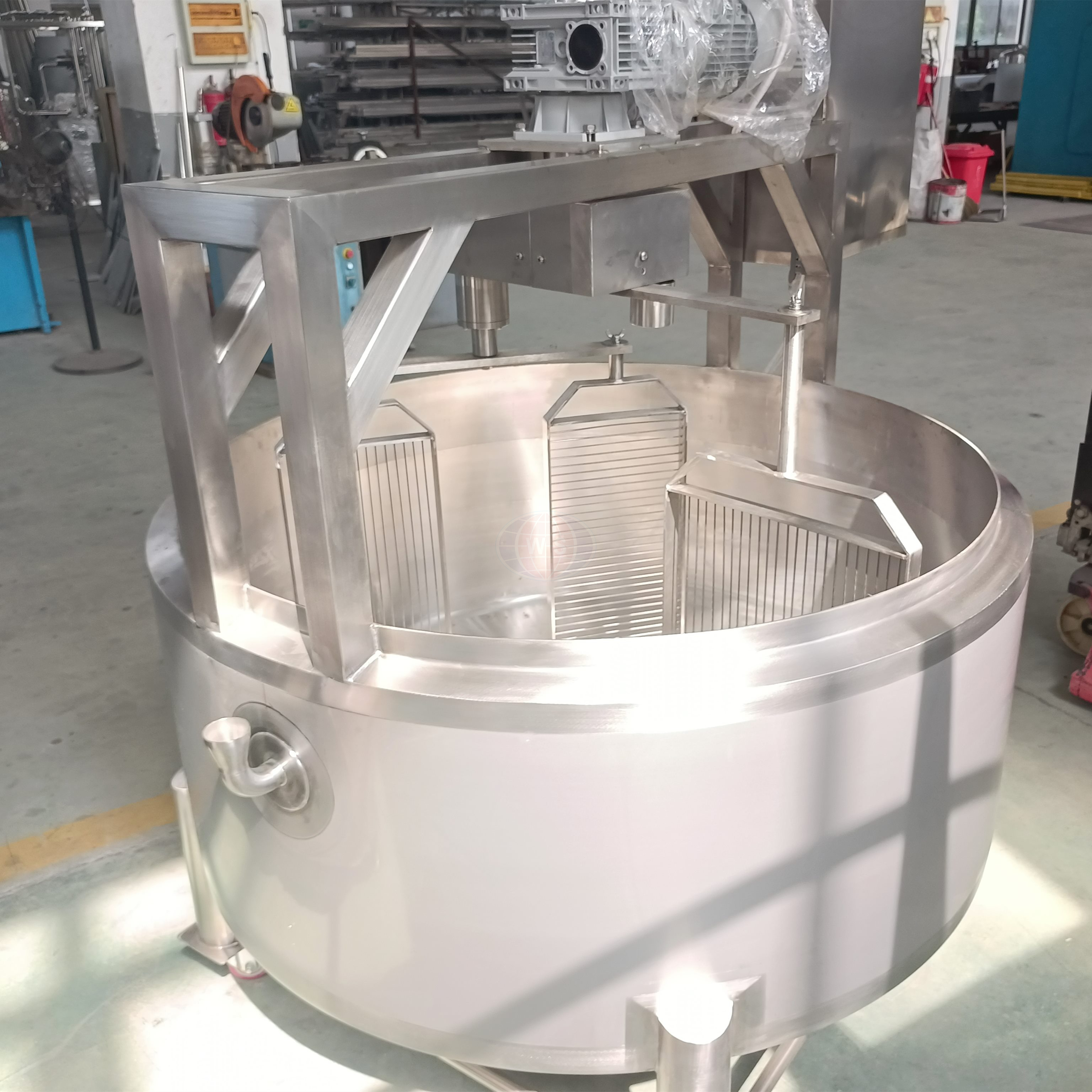 تشمل خط إنتاج الجبن خزان تخزين الحليب الطازج ، وفلتر الحليب ، وملبقة الحليب ، وضريبة الجبن ، وآلة الضغط على الجبن ، ومنصة تشغيل الرائب ، وقاطعة الجبن. يمكن أيضا توفير آلة التغليف.
